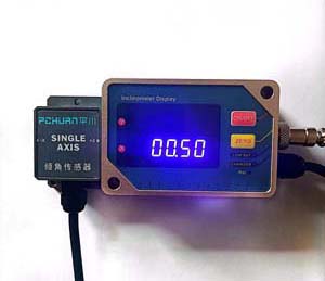該款數(shù)顯儀,是專業(yè)用于顯示傾角傳感器所測量的角度,每臺產(chǎn)品出廠時都經(jīng)過水平度的校正和分度的校正。另外也提供一個按鍵用來作相對角度測量功能,可設置當前角度為零度,以此為基準進行相對傾角變化測量。