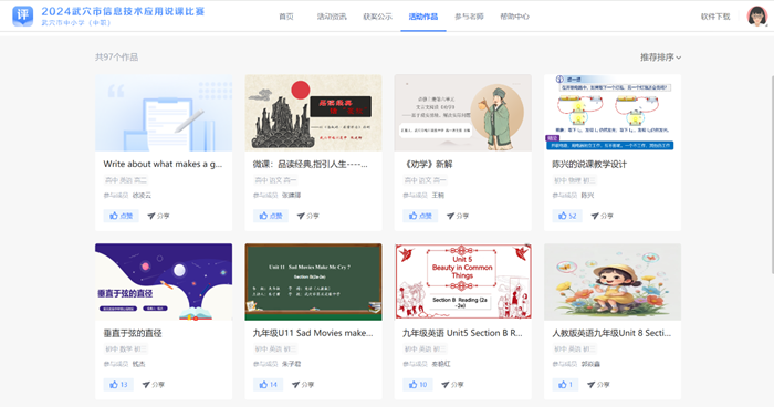 線上預(yù)賽,全員參與:往屆說課比賽的預(yù)賽環(huán)節(jié),各教聯(lián)體學(xué)校自行組織,由于地域、硬件條件、信息傳遞等問題,無(wú)法滿足所有有意向的老師都能夠參與預(yù)賽環(huán)節(jié)的角逐。本次大賽中,專業(yè)錄播教室的建設(shè)為老師們提供的極佳的課程錄制場(chǎng)地,同時(shí)武穴市數(shù)字教育平臺(tái)的說課大賽平臺(tái)也為老師們提供了“一站式”服務(wù),從賽事信息發(fā)布、參賽報(bào)名、作品上傳等環(huán)節(jié),老師們都可以利用碎片化的時(shí)間便捷的完成,一線老師們的參賽意愿也得到了極大的提升。