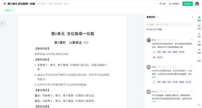 各教聯(lián)體學(xué)校本著“共建、共贏、共享”的原則,充分應(yīng)用在線教研工具,打造常態(tài)化線上線下相融合的集體備課與聽課評(píng)課模式,并通過優(yōu)化教研活動(dòng)流程、提升異地同步教研效率,更好實(shí)現(xiàn)教學(xué)相長(zhǎng),進(jìn)一步提升教聯(lián)體各校區(qū)教學(xué)水平和教育質(zhì)量。通過本學(xué)期的應(yīng)用,也初步沉淀出了網(wǎng)絡(luò)集體備課的開展范式:
