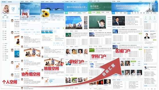 學校空間:以學校為單位開展教學研活動,可與本校師生組織銜接,便于校內各項業務活動的組織管理。學校管理者可發布校內公告、查看基礎管理數據。本校教師可隨時參與各類教、學、研活動,本校學生可積極參與各類校園活動及社會實踐活動。師生發布的所有內容會自動匯聚到學校空間,積淀本校生成性資源,支持各學校空間獨立管理。