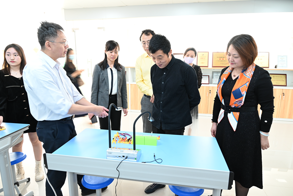 廣東省教育裝備行業協會王自成會長、王桂花秘書長,廣東省國學教育促進會路琦秘書長一行深度體驗了無線全錄播、強交互專遞課堂、理化生實驗教考系統的實際運用。