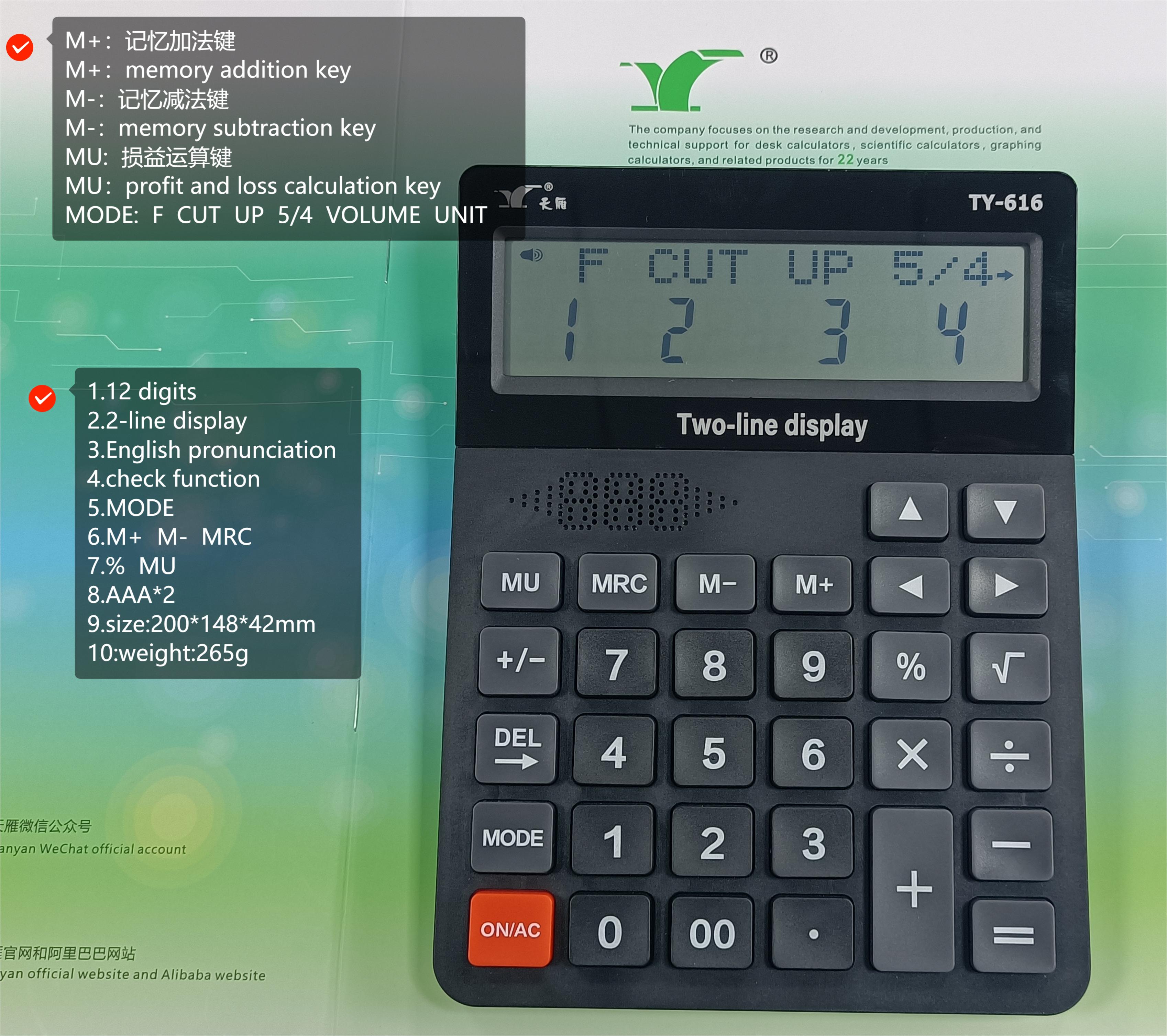 深圳市天雁電子有限公司是一家集設計、開發、生產、銷售和服務于一體的教育電子產品專業生產企業。公司主要產品有:“天雁“牌系列中小學數學教材配套用計算器;“天雁“牌學生計算器科學函數計算器圖形計算器辦公臺式計算器手寫板計算器