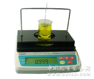主要功能與特點: 任何溶液皆可快速測量 助焊劑、膠狀體、油性體、原油類等相似狀態產品皆可測量 數字顯示、測量精度高、操作簡便、穩定耐用 可測量常溫至100℃溫度狀態下的樣品密度值 取樣方便,所測樣品只需50CC 沒有韋氏天平法、比重瓶法煩瑣的調試與操作 可配合恒溫水槽作業、測量所需溫度的液體比重 測量杯容易清洗,不受比重瓶口徑小的限制,可重復使用。同時也可使用一次性測量杯 揮發性液體、腐蝕性液體、粘稠性液體、強酸強堿性液體皆可快速測量(選購相關配件) 含RS-232C通信接口,方便連接PC與打印機,可選購DE-40打印機打印測量數據 配置專用防風防塵罩,組合方便、堅固耐用 測量步驟: ①將盛有樣品的測量杯放于測量放置板上,扣除掛鉤的重量。 ②用掛鉤將標準砝碼懸掛并完全浸沒在待測液體中,顯示密度值。