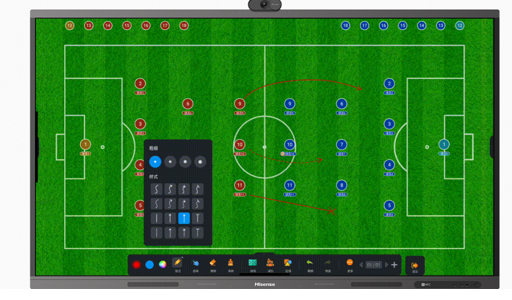 作為一款專業(yè)的足球戰(zhàn)術(shù)板應(yīng)用,戰(zhàn)術(shù)講解功能是重中之重。海信智慧足球戰(zhàn)術(shù)板支持插入賽事圖片進(jìn)行對(duì)照分析,且預(yù)置了多種樣式的戰(zhàn)術(shù)線和圖形等,可輕松完成各種場(chǎng)上走位及進(jìn)攻區(qū)域的示意標(biāo)注,并支持一鍵清屏、保存歷史記錄等,高效便捷。
