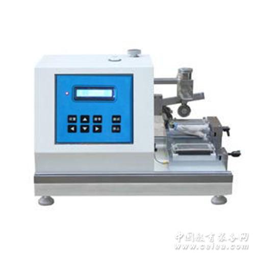 產品詳細介紹產品名稱:鞋幫抗切割試驗機 產品型號:XK-3047 產品說明:鞋幫抗切割試驗機專門用于測試鞋幫,防護手套,皮革等耐切割強度,安全符合GB/T 20991-2007第6.14。 適用于安全手套防護區耐刀切試驗,但不適合那些非常硬的材料手套,在規定的負荷下往復運動,自動記數,測度結果自動停機 鞋幫抗切割試驗機規格參數: 水平運動位移:50mm 刀片旋轉方向與運動方向相反 刀片切割速度小于10cm/s 刀片上荷重:5±0.05N 圓刀片直徑:45±0.5mm, 刀片厚度:3±0.3mm, 刀片總切割角度30°-35°,刀片硬度為740-800HV硬度的鎢鋼 檢測穿透的自動報警停機裝置。 同時測試5組樣品