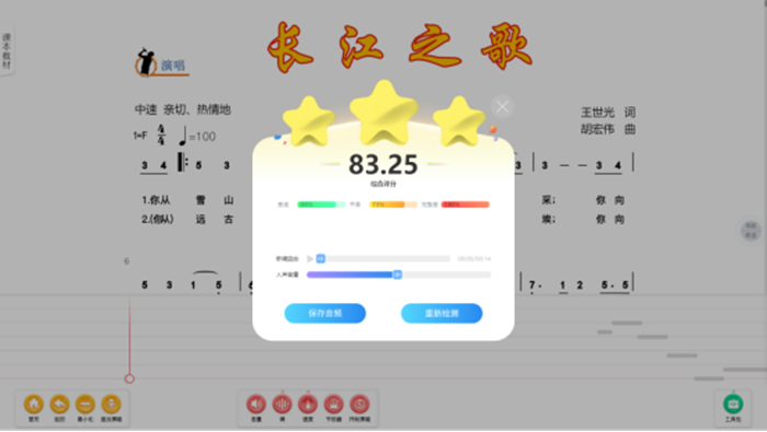 音樂課上學生們再也不怕音準和節奏問題的困擾,學生們只需要對著軟件演唱、演奏,AI就能通過聲音識別技術,精準分析音準、節奏完成度,還能指出需要改進的地方。