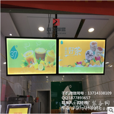 產品詳細介紹鑫飛餐飲吊裝菜牌顯示屏: 屏幕尺寸:43寸 顯示屏描述:16:9 對比度4000:1 亮 度:350cd/㎡ 背光壽命:60000h 液晶屏:全新LG屏 可視角度:廣視角178/178