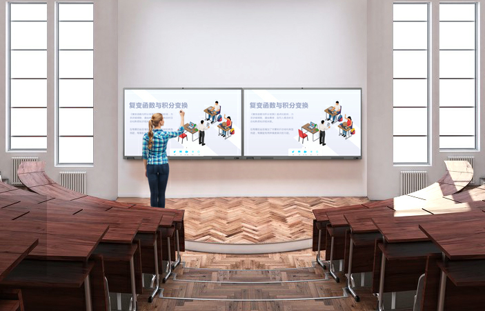 為解決高校投影不清晰,左右兩側學生觀看不見的問題,海信推出智慧雙屏/多屏互動系統解決方案,方案具有雙屏同步教學(雙屏展示同一內容),雙屏聯動教學(雙屏展示PPT的上下頁),雙屏異顯教學(雙屏展示不同內容,一屏課件、一屏視頻或白板)等諸多功能,為高校提供了新穎簡便的授課方式,帶來極致的課堂體驗。