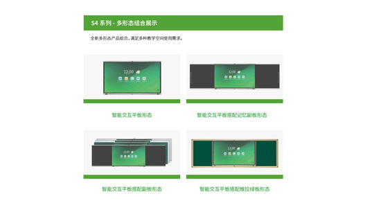 智能交互平板 S4 系列是集成大屏高清顯示,交互式電子白板、電腦、電視、音箱和網絡傳輸等多項于一身的多媒體教學演示與操作設備。全新升級,操控便捷,致力于為課堂及會議場景提供優質的視聽和互動體驗。