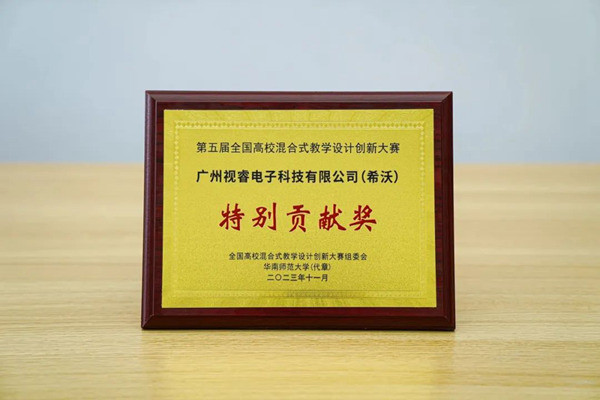 11月12日,第五屆全國高校混合式教學設計創新大賽閉幕式暨頒獎典禮在華南師范大學舉行。其中廣州視睿電子科技有限公司(希沃)作為官方技術支持單位為大賽提供賽事直播、設備保障等支持,獲得“特別貢獻獎”。