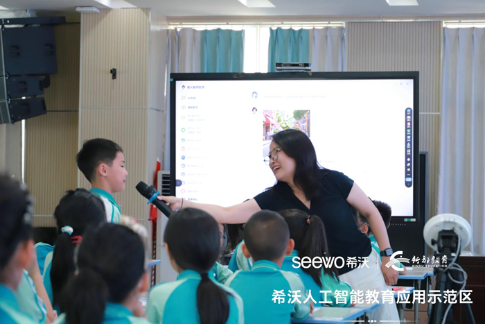 活動由兩節(jié)“人工智能+教育”應(yīng)用展示課拉開帷幕,香城小學(xué)柏果老師帶了題為《這樣想象真有趣》語文課堂,柏老師巧妙運用AI技術(shù)激活學(xué)生想象力,在充滿童趣的課堂中,探索數(shù)字化工具如何為語文核心素養(yǎng)落地提供強(qiáng)大支撐。另一節(jié)題為《A Rainbow Salad》英語課堂,由廖雨瀠老師帶來,廖老師通過AI技術(shù)創(chuàng)設(shè)真實語言情境,實現(xiàn)個性化學(xué)習(xí)路徑設(shè)計,展現(xiàn)英語學(xué)科數(shù)字化轉(zhuǎn)型的生動實踐。