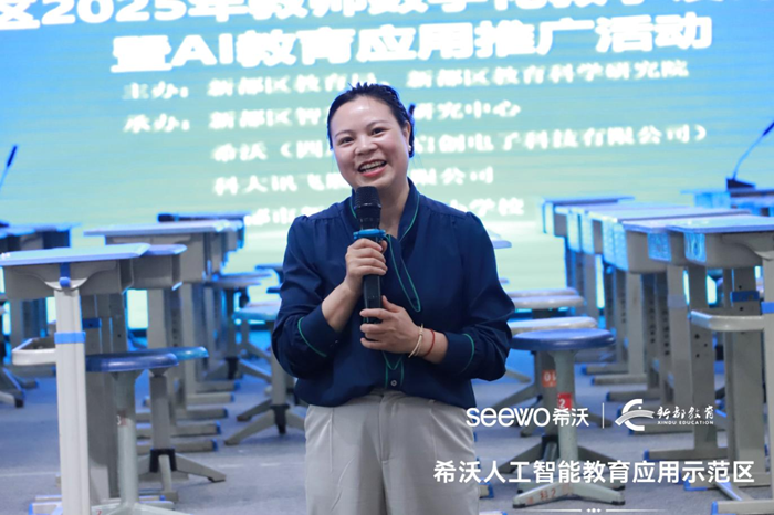 新都區(qū)教科院魏院長與希沃成都區(qū)域業(yè)務(wù)負(fù)責(zé)人高總共同為新都區(qū)“希沃人工智能示范區(qū) ”揭牌,標(biāo)志著區(qū)域與企業(yè)在深化AI教育應(yīng)用上達(dá)成戰(zhàn)略合作。