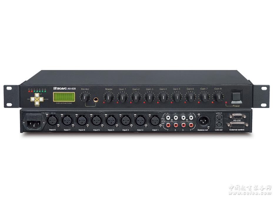 產品詳細介紹產品特點: ■具有LCD液晶顯示屏,且帶四鍵控制鍵盤; ■具有8組平衡式話筒/線路輸入端口(XLR); ★具有8組獨立音頻輸出端口(RCA); ■具有提高語音的透明度和清晰度; ■顯著降低反饋、混響和梳狀濾波效應; ■盡可能縮短設置時間,即插即用; ■激活其他話筒時自動進行增益調整(NOMA功能); ■★擴展串聯,可連接多達400只話筒; ■★NOMA功能可極據使用通道的增多,自動調整輸出電平,防止嘯叫; ■★可外接攝像聯動主機實現視頻跟蹤功能; ■★每路可單獨設置優先權; 頻率響應: 20 Hz - 20 kHz 阻抗輸入: 3.3 kΩ 線路阻抗輸出: 330 Ω 輔助阻抗輸出: 2.2 kΩ 最大輸入電平: Mic 12dB / Line 16dB 最大輸入電平(平衡): Mic 22.4dBV / Aux 16dbV 標準輸入電平: Mic 45dBV / Line 0dBV 標準輸出電平(平衡): Mic 45dBV / Line 0dBV 前級輸出電平: 4.4dBV 最大增益: 62dB 總諧波失真: < 0.1 % 幻像供電: +48V 工作電源: AC220V/50Hz |